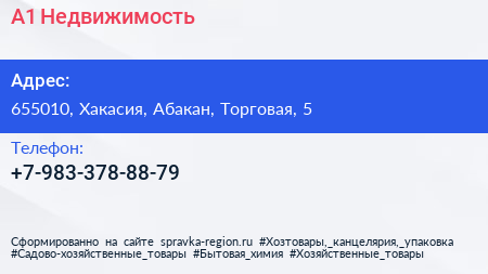 А1 Недвижимость по адресу 655010, Хакасия, Абакан, Торговая, 5 в дальнейшем Организация, размещена в следующих категориях: