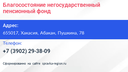 Благосостояние, негосударственный пенсионный фонд по адресу 655017, Хакасия, Абакан, Пушкина, 78 в дальнейшем Организация, размещена в следующих категориях: