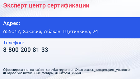 Эксперт, центр сертификации по адресу 655017, Хакасия, Абакан, Щетинкина, 24 в дальнейшем Организация, размещена в следующих категориях: