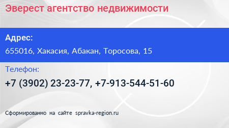 Эверест, агентство недвижимости по адресу 655016, Хакасия, Абакан, Торосова, 15 в дальнейшем Организация, размещена в следующих категориях: