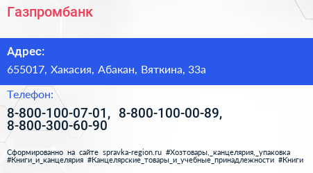 Газпромбанк по адресу 655017, Хакасия, Абакан, Вяткина, 33а в дальнейшем Организация, размещена в следующих категориях: