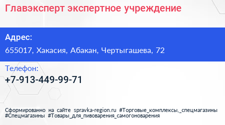 Главэксперт, экспертное учреждение по адресу 655017, Хакасия, Абакан, Чертыгашева, 72 в дальнейшем Организация, размещена в следующих категориях: