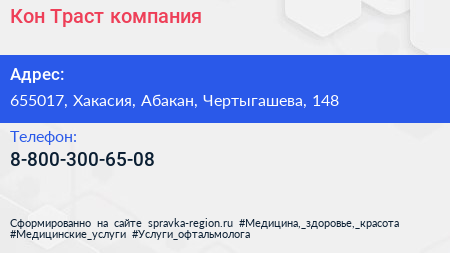 Кон-Траст, компания по адресу 655017, Хакасия, Абакан, Чертыгашева, 148 в дальнейшем Организация, размещена в следующих категориях: