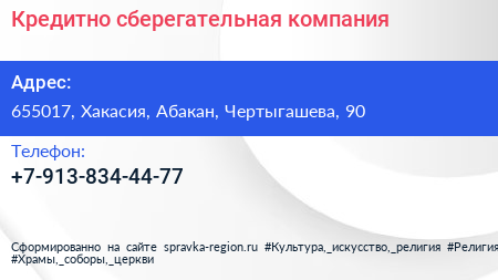 Кредитно-сберегательная компания по адресу 655017, Хакасия, Абакан, Чертыгашева, 90 в дальнейшем Организация, размещена в следующих категориях: