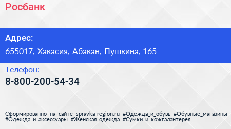 Росбанк по адресу 655017, Хакасия, Абакан, Пушкина, 165 в дальнейшем Организация, размещена в следующих категориях: