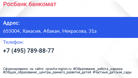 Росбанк, банкомат по адресу 655004, Хакасия, Абакан, Некрасова, 31а в дальнейшем Организация, размещена в следующих категориях: