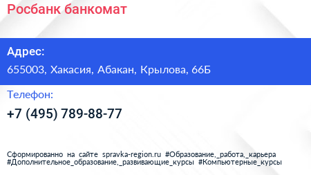 Росбанк, банкомат по адресу 655003, Хакасия, Абакан, Крылова, 66Б в дальнейшем Организация, размещена в следующих категориях: