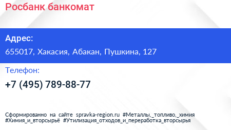 Росбанк, банкомат по адресу 655017, Хакасия, Абакан, Пушкина, 127 в дальнейшем Организация, размещена в следующих категориях: