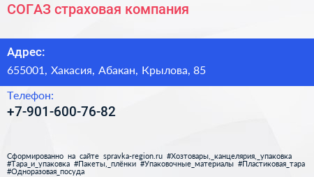 СОГАЗ, страховая компания по адресу 655001, Хакасия, Абакан, Крылова, 85 в дальнейшем Организация, размещена в следующих категориях:
