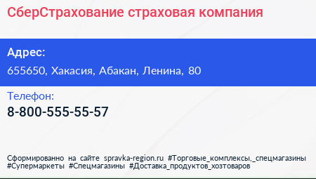 СберСтрахование, страховая компания по адресу 655650, Хакасия, Абакан, Ленина, 80 в дальнейшем Организация, размещена в следующих категориях: