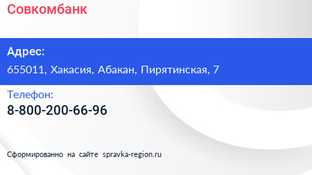 Совкомбанк по адресу 655011, Хакасия, Абакан, Пирятинская, 7 в дальнейшем Организация, размещена в следующих категориях:
