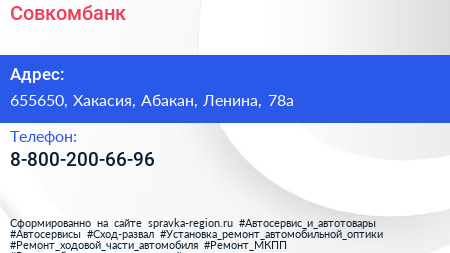 Совкомбанк по адресу 655650, Хакасия, Абакан, Ленина, 78а в дальнейшем Организация, размещена в следующих категориях: