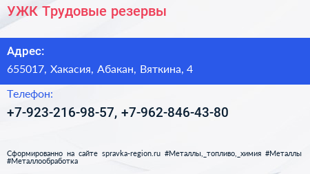 УЖК Трудовые резервы по адресу 655017, Хакасия, Абакан, Вяткина, 4 в дальнейшем Организация, размещена в следующих категориях: