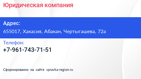 Юридическая компания по адресу 655017, Хакасия, Абакан, Чертыгашева, 72а в дальнейшем Организация, размещена в следующих категориях: