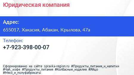 Юридическая компания по адресу 655017, Хакасия, Абакан, Крылова, 47а в дальнейшем Организация, размещена в следующих категориях: