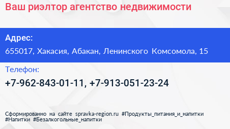 Ваш риэлтор, агентство недвижимости по адресу 655017, Хакасия, Абакан, Ленинского Комсомола, 15 в дальнейшем Организация, размещена в следующих категориях: