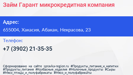 Займ Гарант, микрокредитная компания по адресу 655004, Хакасия, Абакан, Некрасова, 23 в дальнейшем Организация, размещена в следующих категориях: