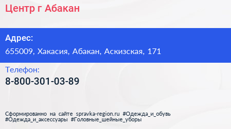 Центр, г. Абакан по адресу 655009, Хакасия, Абакан, Аскизская, 171 в дальнейшем Организация, размещена в следующих категориях: