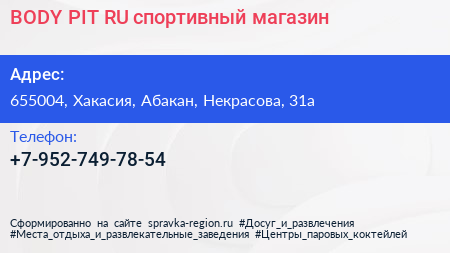 BODY-PIT.RU, спортивный магазин по адресу 655004, Хакасия, Абакан, Некрасова, 31а в дальнейшем Организация, размещена в следующих категориях: