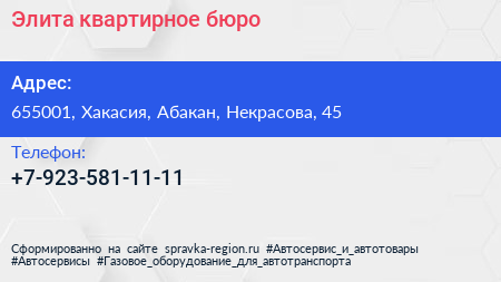 Элита, квартирное бюро по адресу 655001, Хакасия, Абакан, Некрасова, 45 в дальнейшем Организация, размещена в следующих категориях: