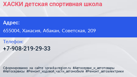 ХАСКИ, детская спортивная школа по адресу 655004, Хакасия, Абакан, Советская, 209 в дальнейшем Организация, размещена в следующих категориях:
