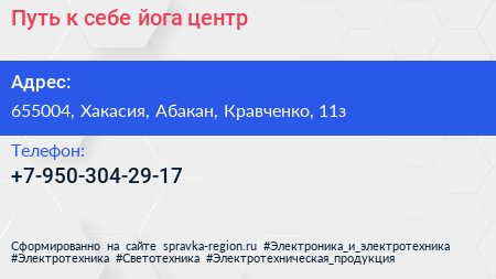 Путь к себе, йога-центр по адресу 655004, Хакасия, Абакан, Кравченко, 11з в дальнейшем Организация, размещена в следующих категориях: