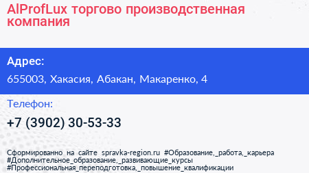 AlProfLux, торгово-производственная компания по адресу 655003, Хакасия, Абакан, Макаренко, 4 в дальнейшем Организация, размещена в следующих категориях: