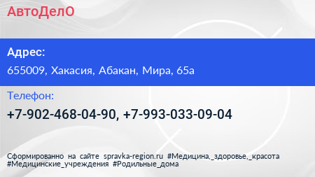 АвтоДелО по адресу 655009, Хакасия, Абакан, Мира, 65а в дальнейшем Организация, размещена в следующих категориях: