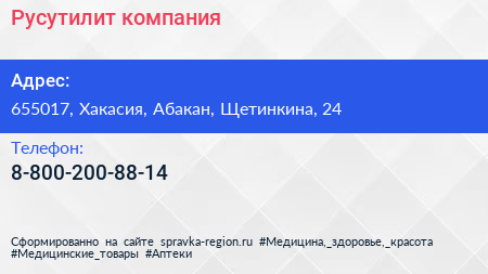 Русутилит, компания по адресу 655017, Хакасия, Абакан, Щетинкина, 24 в дальнейшем Организация, размещена в следующих категориях: