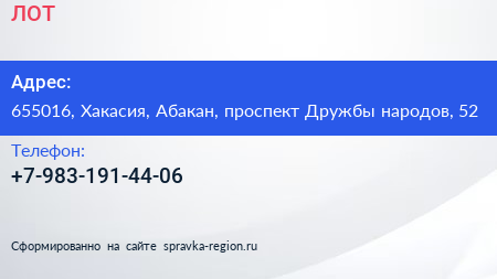 ЛОТ по адресу 655016, Хакасия, Абакан, проспект Дружбы народов, 52 в дальнейшем Организация, размещена в следующих категориях: