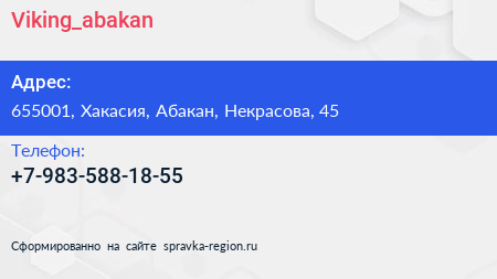 Viking_abakan по адресу 655001, Хакасия, Абакан, Некрасова, 45 в дальнейшем Организация, размещена в следующих категориях: