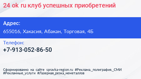 24-ok.ru, клуб успешных приобретений по адресу 655016, Хакасия, Абакан, Торговая, 4Б в дальнейшем Организация, размещена в следующих категориях: