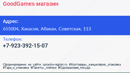 GoodGames, магазин по адресу 655004, Хакасия, Абакан, Советская, 113 в дальнейшем Организация, размещена в следующих категориях: