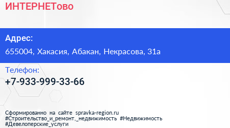 ИНТЕРНЕТово по адресу 655004, Хакасия, Абакан, Некрасова, 31а в дальнейшем Организация, размещена в следующих категориях: