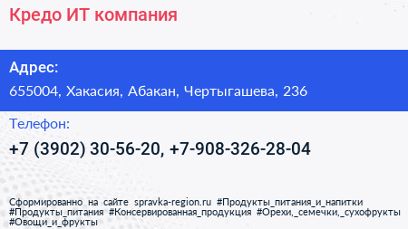 Кредо, ИТ-компания по адресу 655004, Хакасия, Абакан, Чертыгашева, 236 в дальнейшем Организация, размещена в следующих категориях: