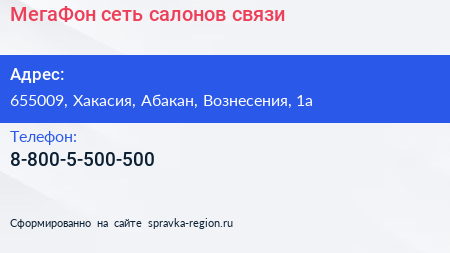 МегаФон, сеть салонов связи по адресу 655009, Хакасия, Абакан, Вознесения, 1а в дальнейшем Организация, размещена в следующих категориях: