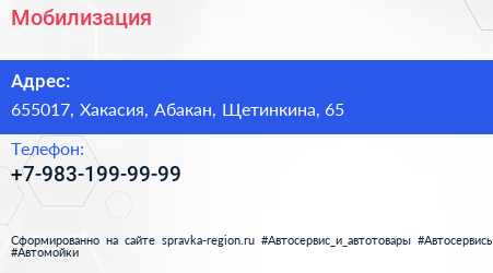 Мобилизация по адресу 655017, Хакасия, Абакан, Щетинкина, 65 в дальнейшем Организация, размещена в следующих категориях: