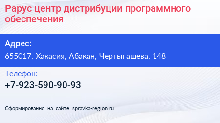 Рарус, центр дистрибуции программного обеспечения по адресу 655017, Хакасия, Абакан, Чертыгашева, 148 в дальнейшем Организация, размещена в следующих категориях: