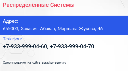 Распределённые Системы по адресу 655003, Хакасия, Абакан, Маршала Жукова, 46 в дальнейшем Организация, размещена в следующих категориях: