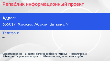 Репаблик, информационный проект по адресу 655017, Хакасия, Абакан, Вяткина, 9 в дальнейшем Организация, размещена в следующих категориях: