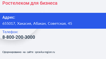 Ростелеком для бизнеса по адресу 655017, Хакасия, Абакан, Советская, 45 в дальнейшем Организация, размещена в следующих категориях:
