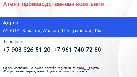 Атент, производственная компания по адресу 655014, Хакасия, Абакан, Центральная, 46а в дальнейшем Организация, размещена в следующих категориях: