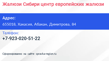 Жалюзи Сибири, центр европейских жалюзи по адресу 655018, Хакасия, Абакан, Димитрова, 84 в дальнейшем Организация, размещена в следующих категориях: