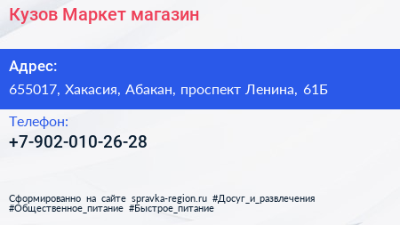 Кузов Маркет, магазин по адресу 655017, Хакасия, Абакан, проспект Ленина, 61Б в дальнейшем Организация, размещена в следующих категориях: