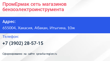ПромЕрмак, сеть магазинов бензоэлектроинструмента по адресу 655004, Хакасия, Абакан, Итыгина, 10ж в дальнейшем Организация, размещена в следующих категориях: