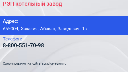 РЭП, котельный завод по адресу 655004, Хакасия, Абакан, Заводская, 1в в дальнейшем Организация, размещена в следующих категориях: