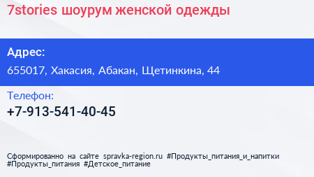 7stories, шоурум женской одежды по адресу 655017, Хакасия, Абакан, Щетинкина, 44 в дальнейшем Организация, размещена в следующих категориях: