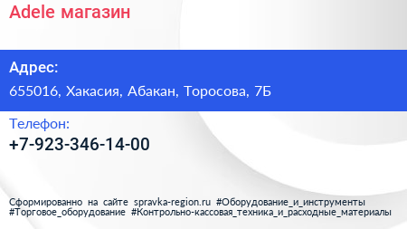 Adele, магазин по адресу 655016, Хакасия, Абакан, Торосова, 7Б в дальнейшем Организация, размещена в следующих категориях: