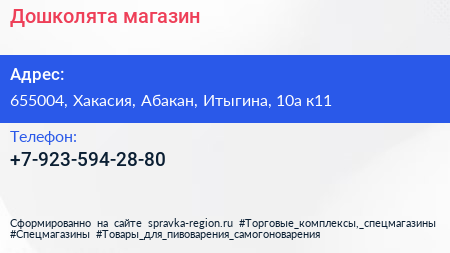Дошколята, магазин по адресу 655004, Хакасия, Абакан, Итыгина, 10а к11 в дальнейшем Организация, размещена в следующих категориях:
