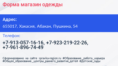 Форма, магазин одежды по адресу 655017, Хакасия, Абакан, Пушкина, 54 в дальнейшем Организация, размещена в следующих категориях: